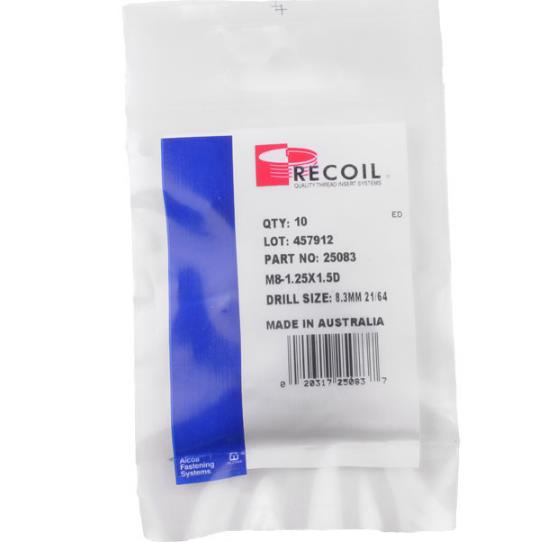 3:recoil钢丝螺套补充包装提供不同长度的钢丝螺套,从1D到3D,用来使用在各种不同厚度的材料上面。