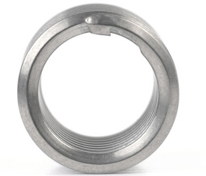 锁紧无尾螺套是在普通顺牙型无尾螺套的基础上增加一圈或几圈多边形的锁紧圈,对装配螺钉起到紧固防松作用。锁紧型无尾螺套的特殊构造在强烈的震动和冲击环境中能将螺钉锁紧于螺孔中,不会松脱,锁紧无尾螺套的锁紧性能优于其他锁紧装置。锁紧无尾螺套可用于仪器仪表、精密贵重的动力设备、以及航天、航空、军事设备等要求高保险系数的场合。